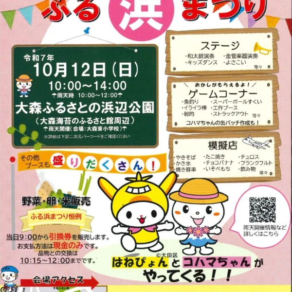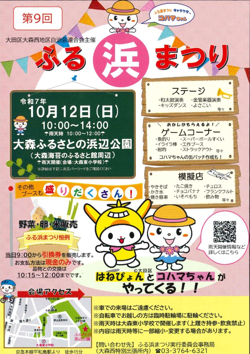 Get ready for a lively autumn celebration at the 9th Furuhama Festival — happening on Sunday, October 12, 2025, from 10:00 AM to 2:00 PM at Omori Furusato-no-Hamabe Park (next to the Omori Nori Museum).