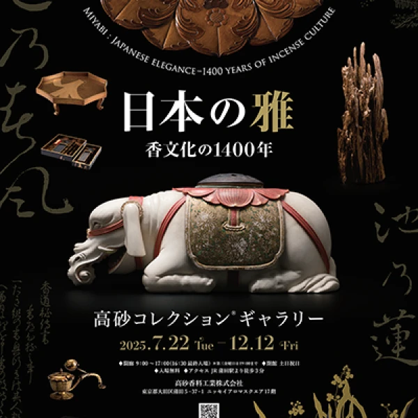 This special exhibition showcases exquisite incense tools from the Takasago Collection, exploring how incense has played a vital role in Japanese life—from Buddhist rituals to Heian court culture, and from samurai incense games to modern artistic expressions.