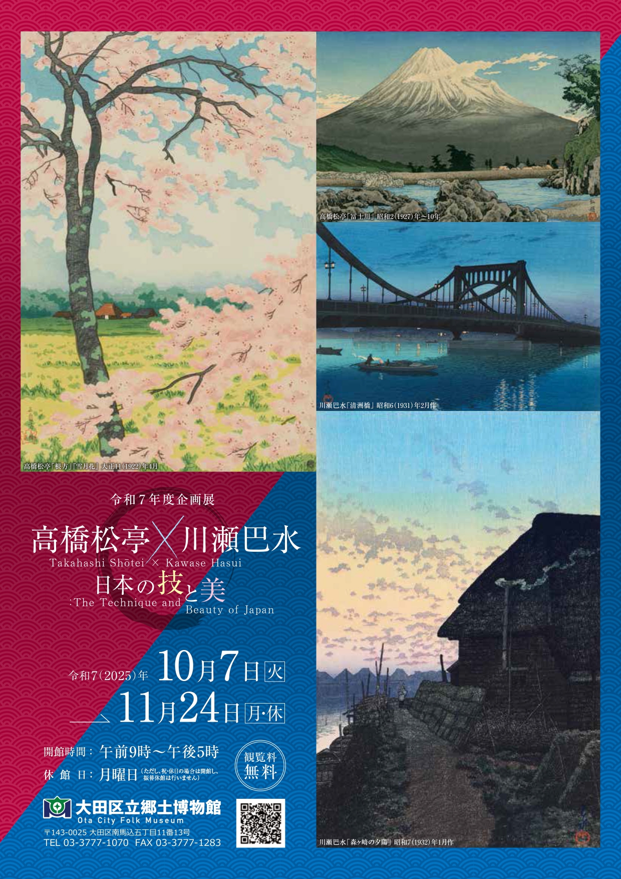 The exhibition showcases beautiful landscape prints by Shotei and Kawase Hasui- two artists who spent part of their lives here in Ota city.