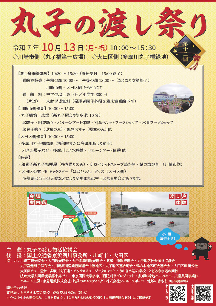 On the day, in addition to the ferry ride experience, a variety of events will be held on both the Ota Ward and Kawasaki City sides!!