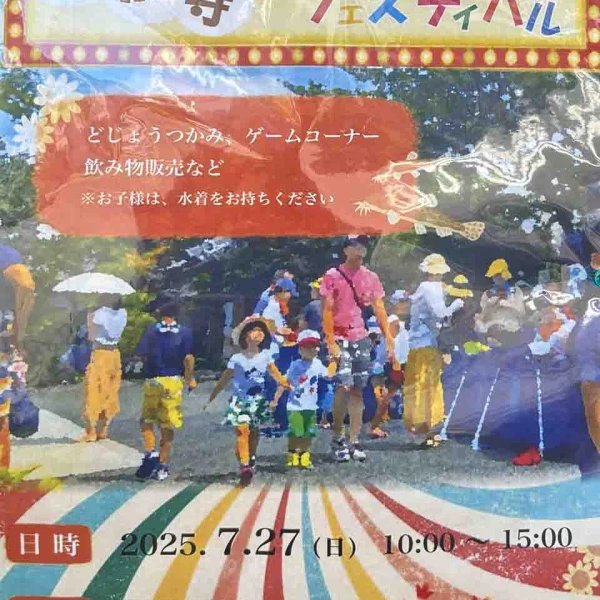 Experience a traditional and fun-filled day with your children this summer! Highlights include dojo(loach) catching, a variety of fun games, and drink sales.